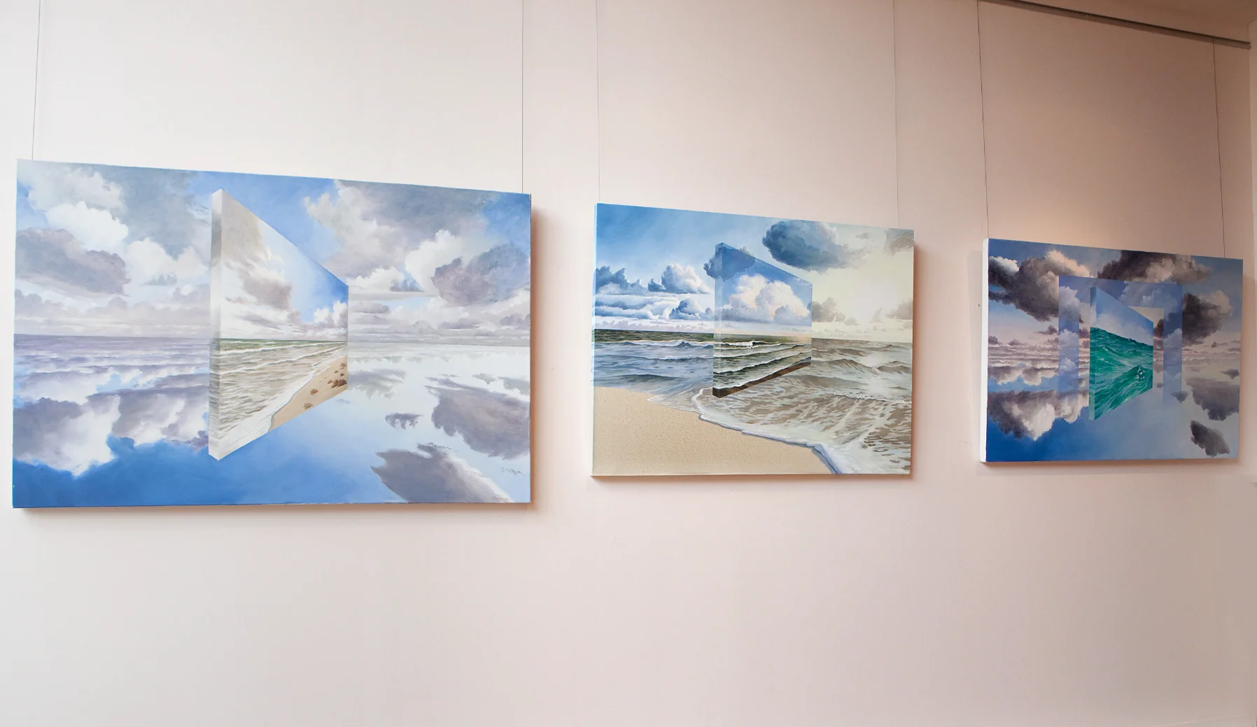 The idea of literal representation holds no interest for artist Lisa Cuscuna. When gallery patrons look at one of her surrealistic paintings and ask, “What are you trying to say?” she would prefer that viewers come up with their own interpretations. Cuscuna has delighted in combining the real and the surreal in work like the canvas that shows an open doorway floating in the sky above a beach. (I think of that airborne, reflective monolith in “2001,” but you might see Dali or Escher.) “I ask people to look beyond a conventional way of seeing things — try to choose another point of view and see if that works for you,” she says in her studio at Stamford’s Loft Artists Association.