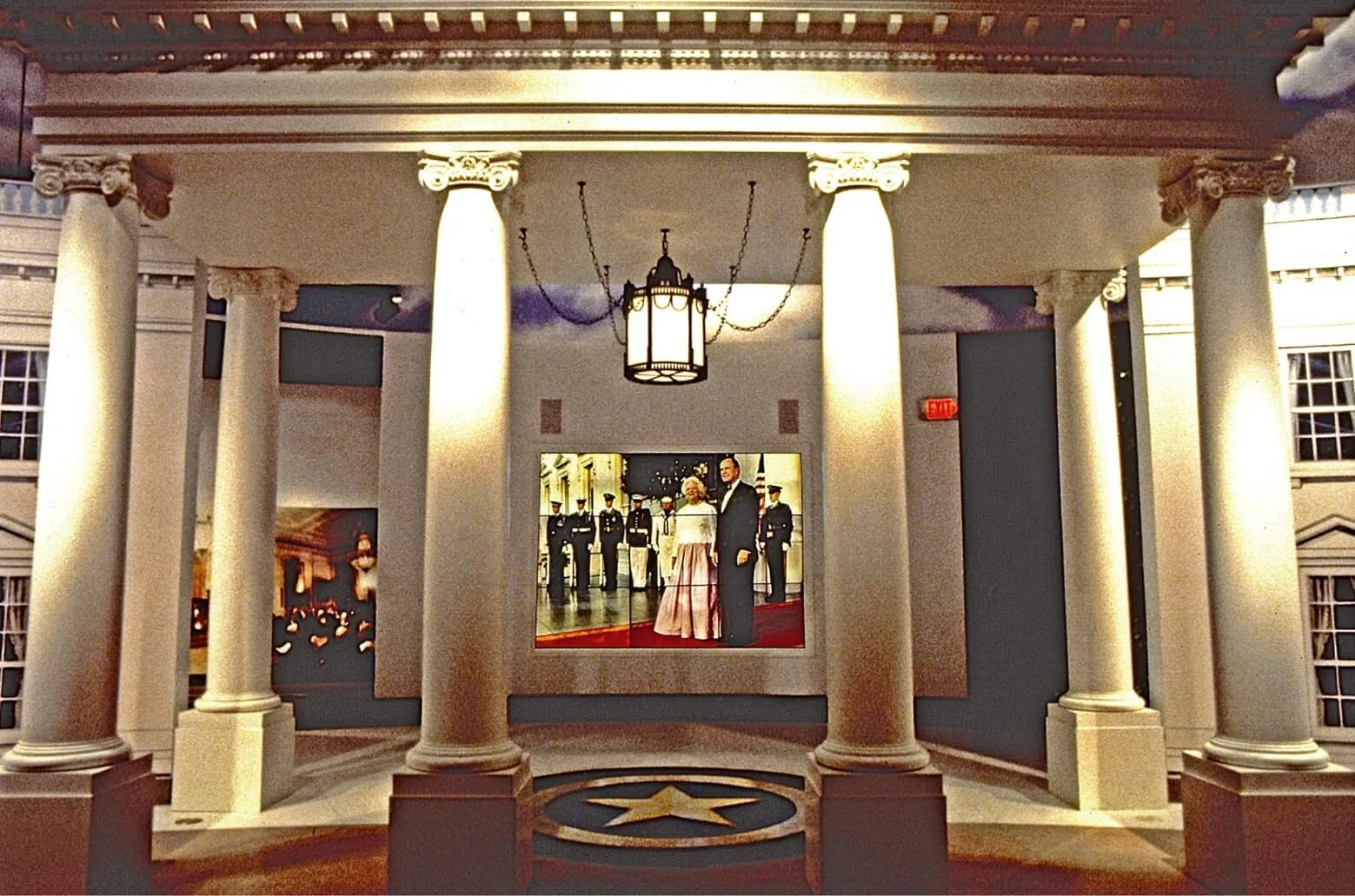 The largest element in the George H. W. Bush Presidential Library is a 60 – foot facade of the White House. Through the center portico is a videowall presentation directed and produced by Cuscuna illustrating the life of the President during his years of office. The 5 – minute presentation, “ A Da y in the Life ”, chronicles the significant events that took place during his term, choreographing elements according to the time of day they occurred.
