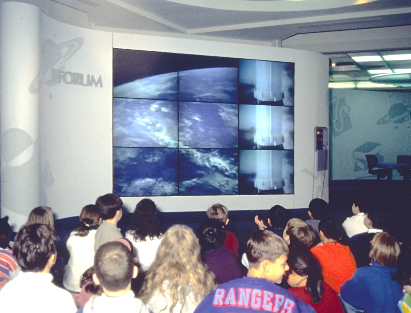 The Panasonic Learning Lab was created by Dr. Ellyn Berk, PHD, as a day trip experience for New Y ork School children, The purpose of the Lab was to develop the interactive learning skills of elementary level students. The theme of the program was to ask students to research anything in the history of mankind that they felt would be of interest to other children inhabiting another planet. The 5 – minute video wall presentation designed by Cuscuna was played first to orient the students to the significant events, people and discoveries in our history. Research would be done on one of the first historical databases created for interactive learning within the New York City school system. The resulti ng work was a a personalized message created by each student for the purpose of interplanetary communication and exploration.